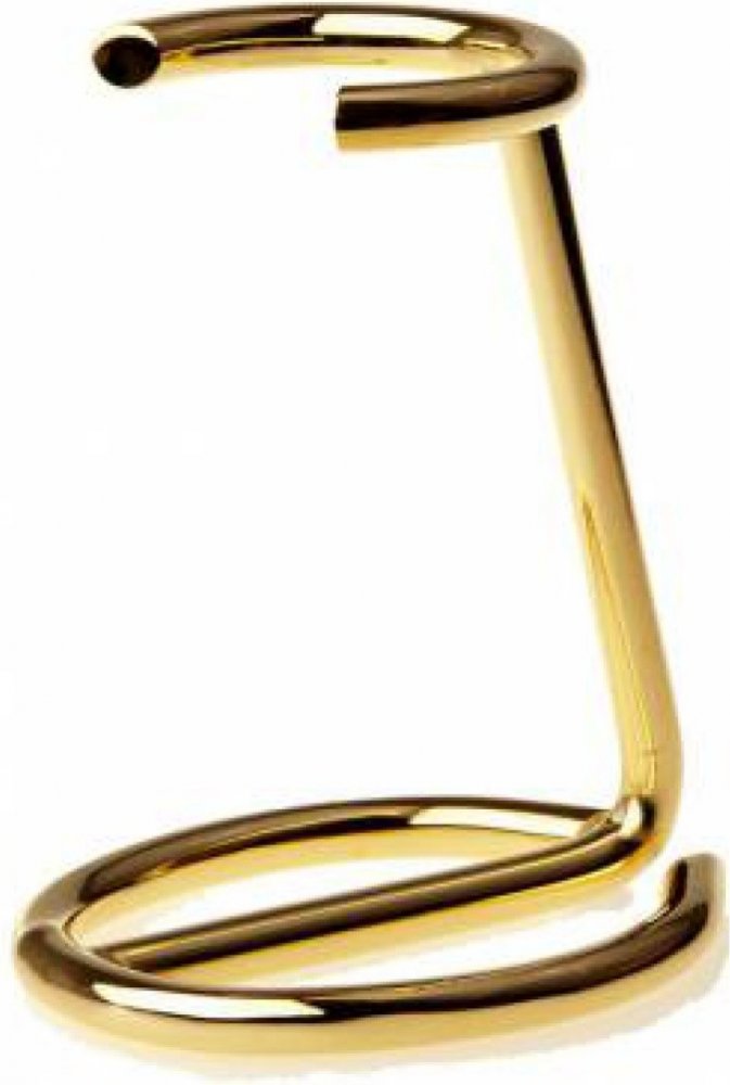 Kovový stojánek na holící štětku ve zlaté barvě.Použití: Po holení je doporučeno obrátit štětku štětinami dolů, aby se zabránilo možné hnilobě a vypadávání štětin. Lze jej přišroubovat či přilepit na stěnu, nebo nechat volně stát.Výška stojánku 67 mm.Vhodný pro štětky s průměrem uzlu od 19 mm do 25 mm.Vyrobeno v Itálii.