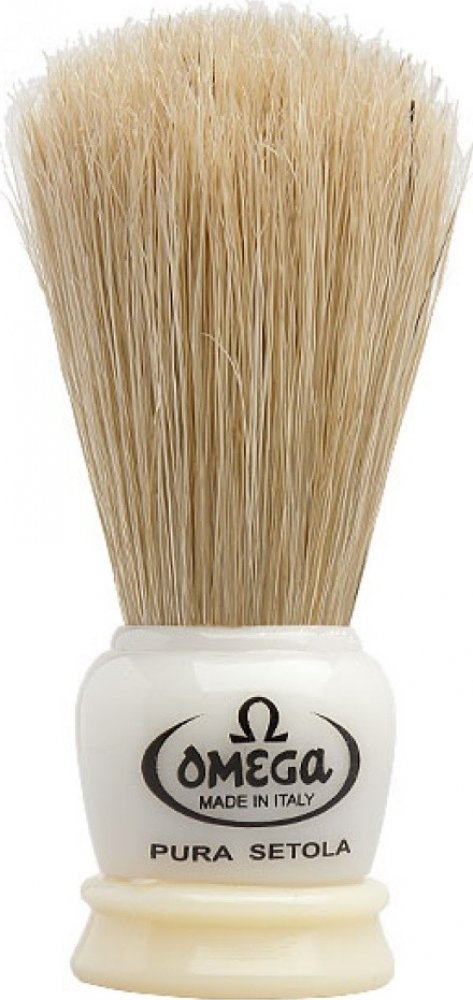 Štětka Omega z prasečích štětin, které se vyznačují svou větší tvrdostí oproti jezevčím štětinám. To však není na škodu, protože mají nejen silnější masážní efekt, ale taktéž při nanášení mýdla či pěny na holení efektivně odstraňují odumřelou pokožku. Díky svým rozměrům si ji oblíbíte obzvláště na cestách.