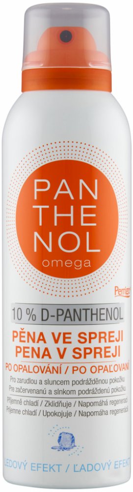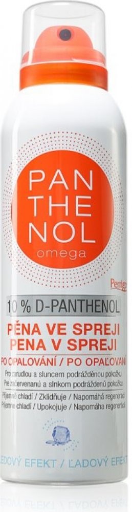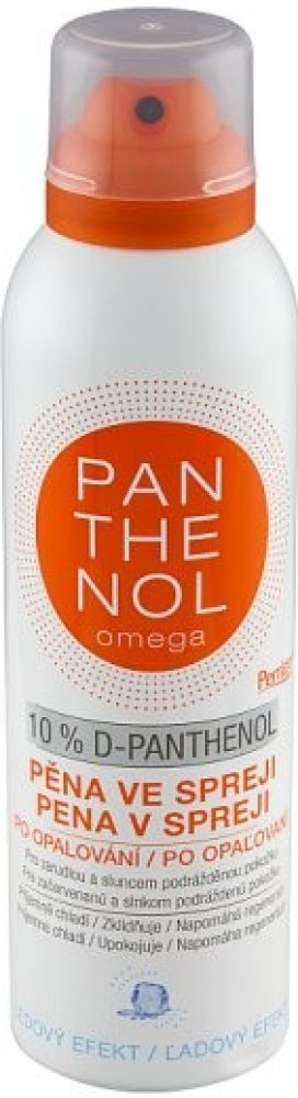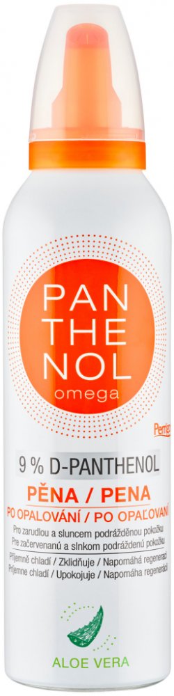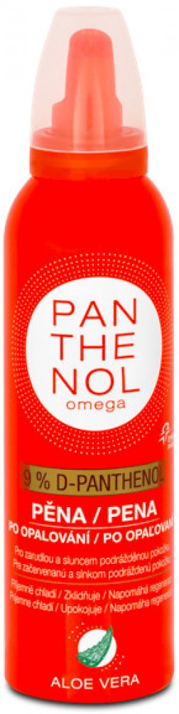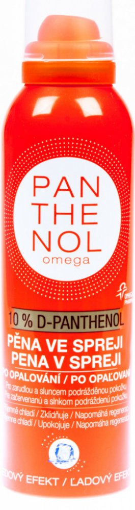 Pěna ve spreji po opalování s vysokým obsahem D-Panthenolu (10%) pokožku po opalování zklidňuje, regeneruje, chladí, obnovuje. Přináší úlevu sluncem podrážděné pokožce. Složení je obohaceno o vitamíny: A,E a F. Lehká forma umožňuje šetrnou aplikaci. Při pravidelné aplikaci je pokožka zregenerovaná, zklidněná, a bez zarudnutí. Lehce se roztírá, rychle vstřebává, nezanechává mastný filtr. Bez obsahu parabenů. Dermatologicky testováno. Český výrobek. Výrobce: Omega Pharma. Objem: 200 ml.