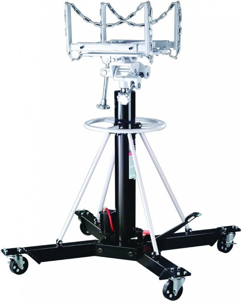 Pojízdný pneumaticko-hydraulický stojanový zvedák s nosností 1000 kg s vrchní upínací hlavicí pro snadnou montáž a demontáž agregátů automobilů.