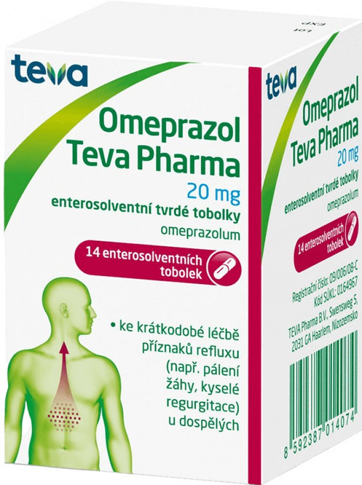 Doporučená dávka přípravku Omeprazol Teva Pharma jsou dvě 10 mg tobolky jednou denně po dobu 14 dnů. Navštivte Vašeho lékaře, pokud během této době příznaky onemocnění neodezní. Někdy může být nutné užívat tobolky 2-3 po sobě následující dny, než dojde ke zlepšení příznaků.Léčivou látkou je omeprazolum. Jedna tobolka obsahuje omeprazolum 10 mg nebo 20 mg.