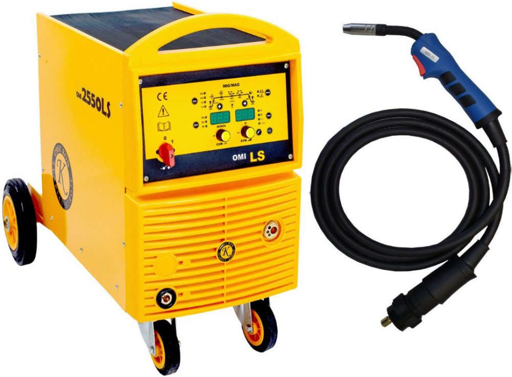 Synergický invertorový svářecí poloautomat OMI 2550LS umožňuje nastavení paramétrů manuálně nebo pomocí synergie. Je možnost dále elektronicky nastavit délku bodu, hodnoty sváření dlouhými body či přepnout stroj do režimu dvoutakt nebo čtyřtakt. Digitální V-A metr. Dvoukladkový podavač svářecího drátu. Eurokoncovkou je možné připojení hořáků 3,4,5 m.