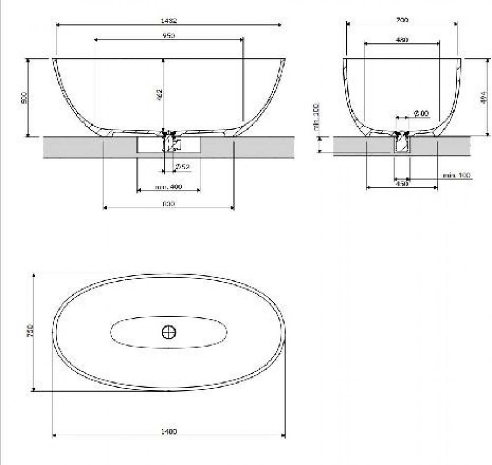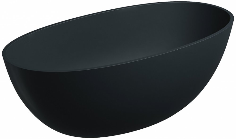 Samostatně stojící vana barva matná černá láva materiál kompozit rozměry 1480 x 750 x 500 mm objem 308 l bez přepadu odtok uprostřed 2 plochy pro opření zad vanová odtoková souprava ClickClack je součástí balení instalace vyžaduje vytvoření otvoru pro uložení odpadu vany