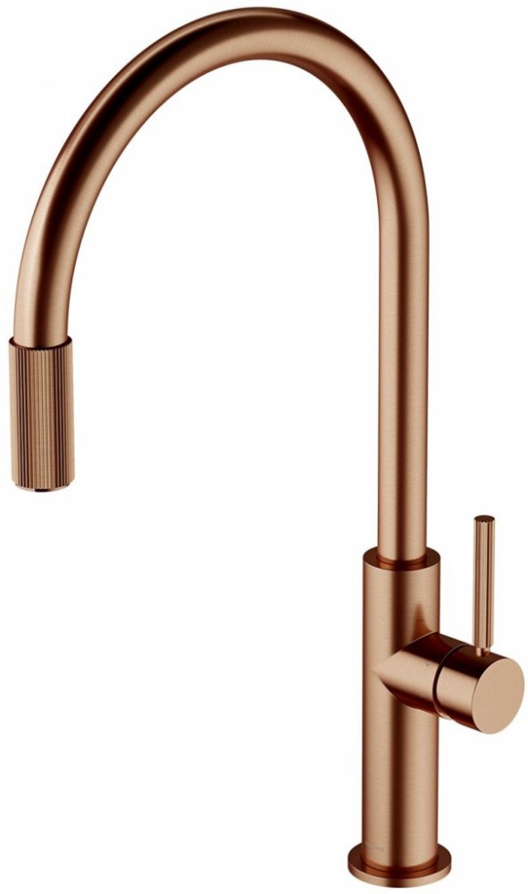 SWITCH | kuchyňská baterie pro připojení k filtrační sadě Barva: kartáčovaná měď (CPB) Kuchyňská baterie Omnires Switch kombinuje minimalistický design založený na vyvážených proporcích s praktickou funkčností a dodává jak čistou, tak filtrovanou vodu. Výrazné, jemně rýhované detaily umožňují intuitivní používání díky indikaci dvou nezávislých míst pro otevření vody: obyčejné vody na baterii a filtrované vody na konci výtoku - stačí otočit kroužkem umístěným na výtoku a naplnit sklenici rychlým proudem pitné vody té nejvyšší chuti. Baterie je k dispozici se sadou univerzálních přípojek pro připojení jakékoli filtrační soupravy namontované ve standardní dřezové skříňce. Výrobek je vyroben z vysoce kvalitní mosazi a je vybaven špičkovou keramickou hlavicí s technologií COLD START. Ta umožňuje, aby se proud pro ruční mytí a mytí nádobí standardně otevíral na studenější vodu, čímž se šetří energie a spotřeba teplé vody. Vertikální startovací poloha baterie umožňuje její instalaci v blízkosti stěny, aniž byste se museli starat o prostor potřebný k jejímu otočení pro otevření zdroje vody. Broušená měď je ušlechtilá povrchová úprava s teplou červenohnědou barvou a saténovým povrchem. Povrchová úprava byla vyrobena pomocí pokročilé technologie PVD. Technické specifikace: Vnitřní povrchová úprava je vyrobena z měděného kartáčku s povrchovou úpravou: - otočná dvoucestná výtoková trubice s funkcí filtrované vody (funkce je k dispozici po připojení k filtrační sadě) - kompletní: přípojky pro filtrační soupravu ve velikostech G ½", ⅜" a ¼" - keramická hlavice s technologií COLD START - dosah výtoku: 22,6 cm - výška odtoku vody: 22 cm: 25,5 cm - celková výška baterie: 25 cm: 44,5 cm celková výška baterie - maximální tloušťka desky: 3,5 cm