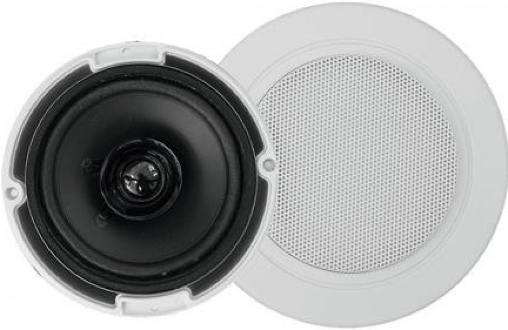 2-way coaxial speaker. 100 V transformer with 2 power taps. High-quality, scratch-resistant plastic housing (ABS) with metal grille. Easy mounting via spring clamps, similar to standard flush-mount lights. For indoor PA systems.