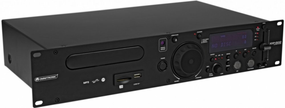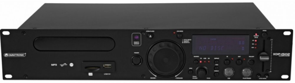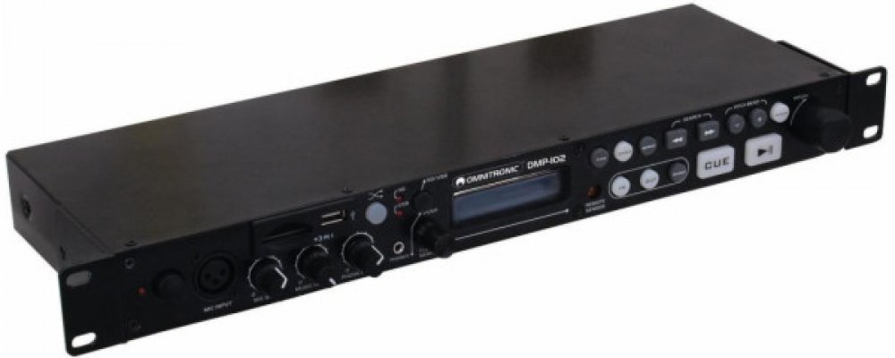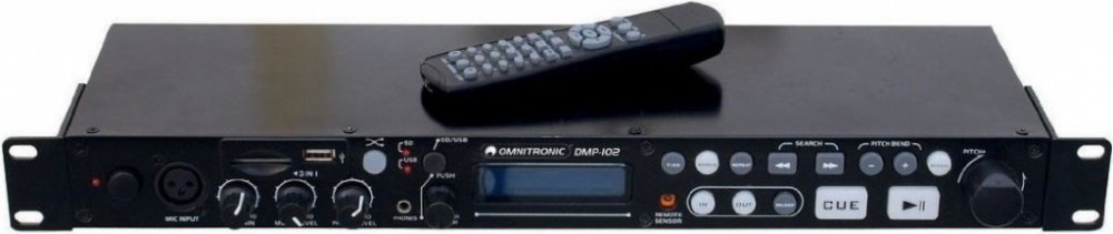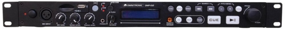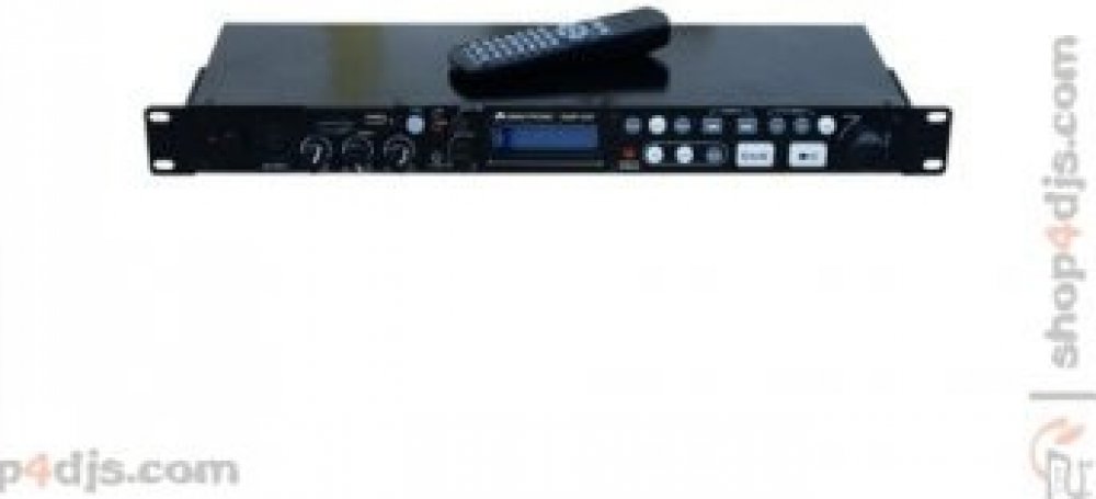 USB/SD přehrávač MP3 přehrávač s USB portem 2.0 a čtečkou SD/MMC karet (až 4 GB hudby, tj. 800 skladeb) vč. dálkového ovládání. 40 sec. Antishock, Pitch ±24 %, funkce Cue, Loop/Reloop, Repeat, Single/Continue, veškeré zobrazované informace o MP3, plná kontrola přehrávání jako u CD přehrávače, LCD displej s modrým podsvícením, mikrofonní vstup (XLR), sluchátkový výstup na předním panelu (3,5 mm jack), Master výstup (XLR nebo RCA). Pro instalaci do racku 19" (1HE).