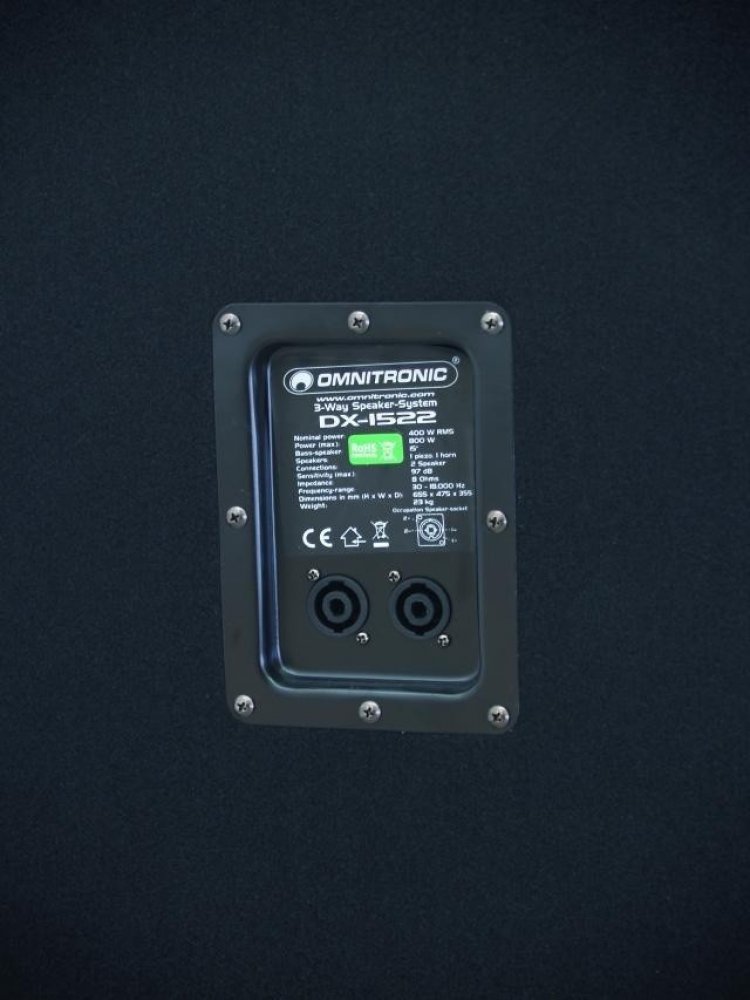 Kompaktní univerzální 3-pásmový reprobox. Výkon 150 W RMS, impedance 8 Ohm, 15“ basový reproduktor s dvojicí bassreflexů, středová horna a výškový tweeter. Reproboxy Omnitronic série DX jsou dlouhodobě nejprodávanější boxy v Evropě ve své kategorii. Reproboxy se díky svým malým rozměrům a nízké hmotnosti snadno přenášejí. Jsou potaženy černým kobercem, který společně s ochrannými rohy zabraňuje jejich poškození při manipulaci. Každý box má po stranách dvojici držáků pro přenášení, satelity jsou vybaveny zapuštěným hnízdem pro jednoduchou instalaci na stativ či distanční tyč. Reproboxy mají univerzální použití, jsou vhodné pro mobilní akce, živé hraní, prezentace a předváděcí akce i pro pevné instalace v menších tanečních klubech. Boxy jsou určeny pro hobby a poloprofesionální použití. Při kladení důrazu na kvalitní basy doporučujeme kombinovat tyto reproboxy se subwoofery Omnitronic série BX.