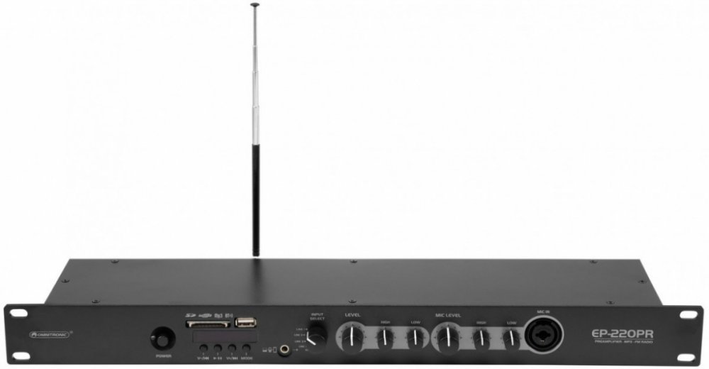 Profesionální předzesilovač se zabudovaným multimediálním přehrávačem vhodný pro ozvučení komerčních prostor. Bluetooth přijímač pro bezdrátové přehrávání hudby z mobilních zařízení (například smartphony nebo tablety). MP3 přehrávač s USB 2.0 portem a SD slotem, integrovaný FM tuner. 4x linkový stereo vstup RCA na zadním panelu přístroje. Linkový vstup Jack 3,5 mm a kombinovaný mikrofonní vstup XL...