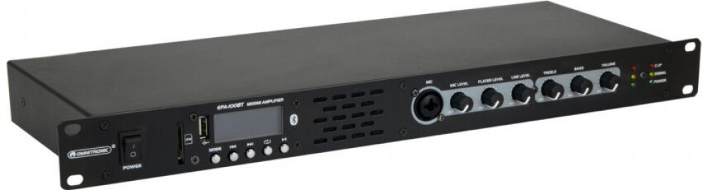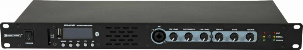 Omnitronic EPA-100BT je stereofonní zesilovač třídy D s možností mixáže EPA-100BT. Mimořádně vhodný pro pevné instalace v restauracích, tělocvičnách i obchodech a všude tam, kde je vyžadováno jednoduché přehrávání hudby z více zdrojů. Výkon 2 x 50 wattů při 4 ohmech. Je vybaven připojeními pro mikrofon, linkovým vstupem a obsahuje také vestavěný audio přehrávač s USB portem a slotem pro paměťovou ...