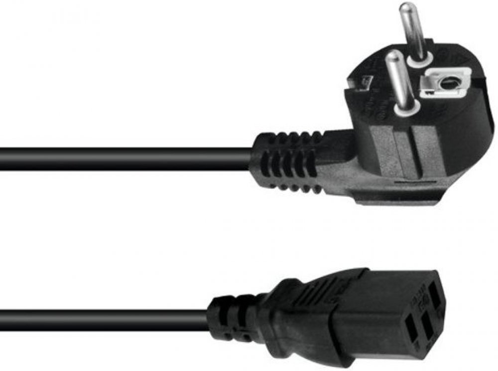 Vidlice typu E, konektor C13. Průměr vodičů 3x 1.0 mm, délka kabelu 5 metrů.