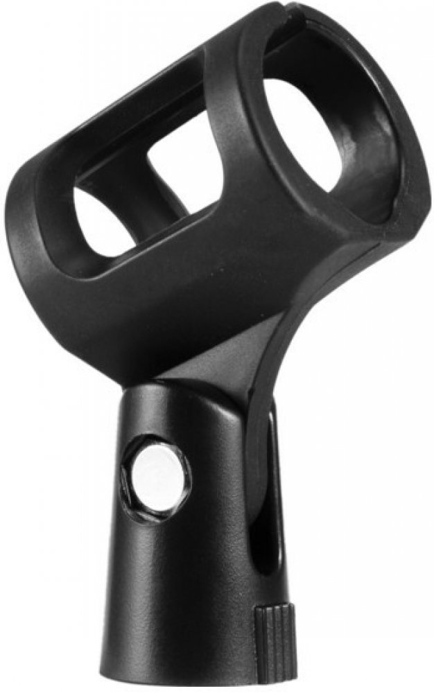 Univerzální držák mikrofonu pro průměr 24 - 35 mm, vnitřní závit 16 mm (5/8"), volitelný adaptér použitelný pro stojany s vnitřním závitem 10 mm (3/8"). Nastavitelný úhel.