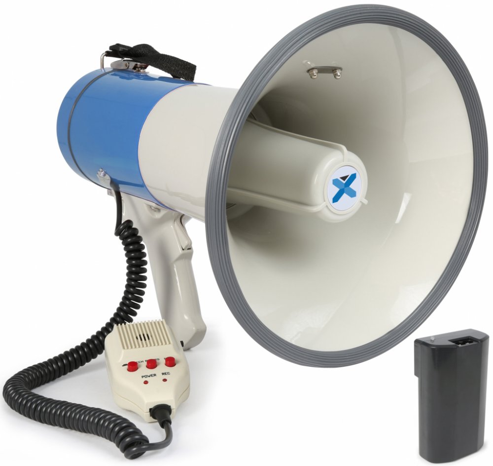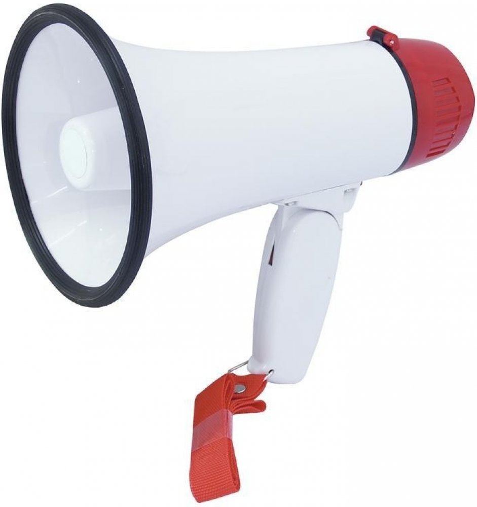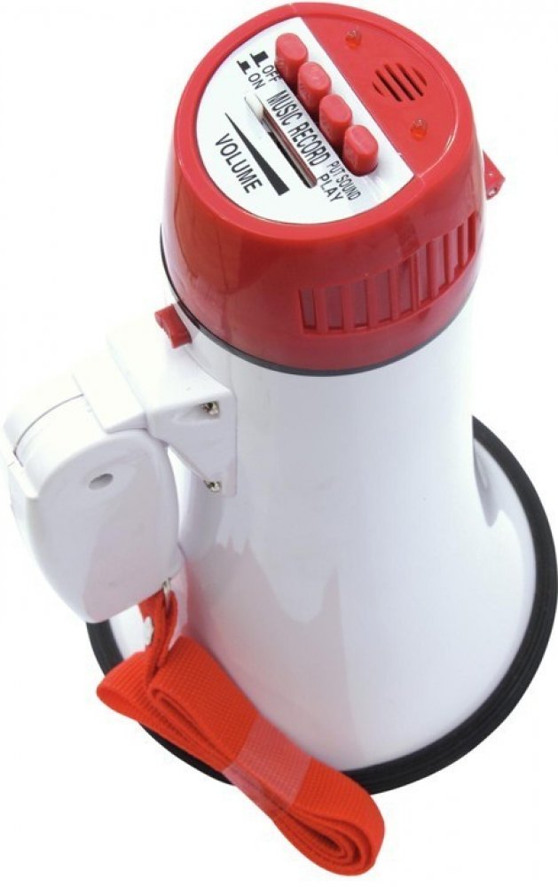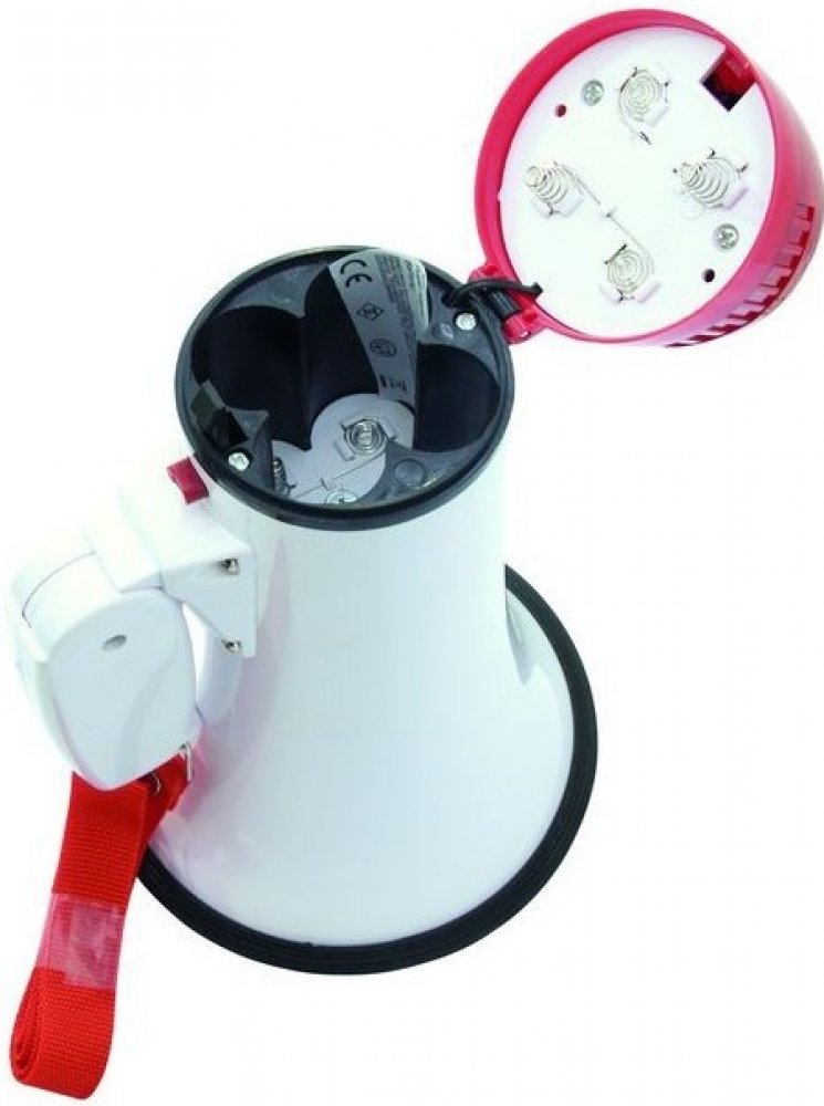 Kvalitní megafon, konstrukce odolná vůči oděru. Ovládání hlastitosti a zapínání přímo na držadle. Napájení 1,5V bateriemi.