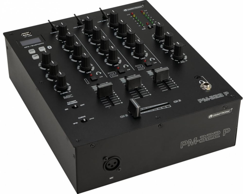 3-kanálový mixážní DJ pult se zabudovaným multimediálním přehrávačem. 3 základní vstupní kanály s regulací úrovně signálu, 3-pásmovými korekcemi zvuku, funkcí Cue a kanálovým faderem. Oddělený DJ mikrofonní kanál (XLR) s vlastní regulací úrovně signálu a 2-pásmovým ekvalizérem. Bluetooth přijímač pro streamování hudby z mobilních zařízení (smartphony a tablety). MP3 přehrávač s USB portem a ovláda...