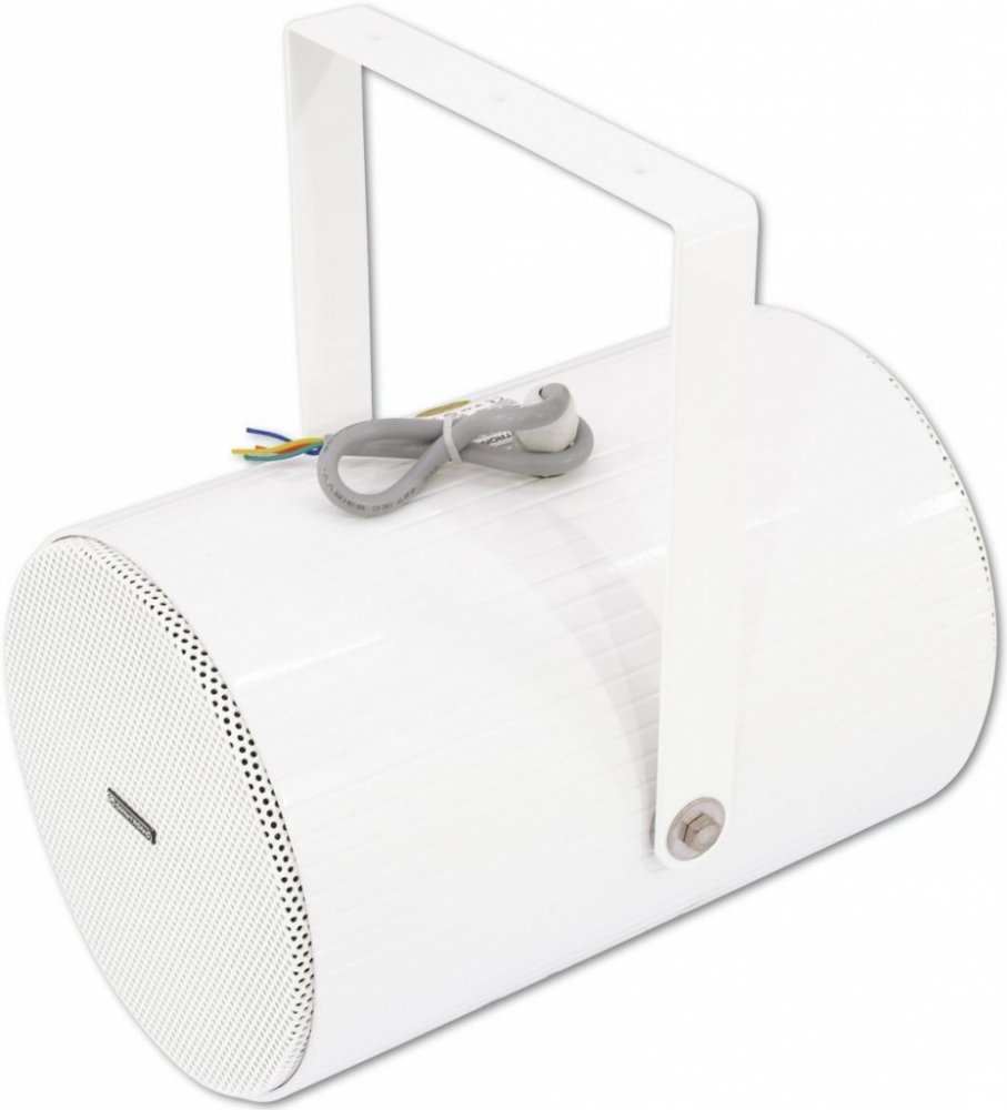 100 V speaker system for wall and ceiling installation. For 8-ohm and 100 V systems. 4-step power selector. Loose cable ends. Movable mounting bracket. Weather-proof plastic cabinet (IP44). For outdoor and indoor amplifying systems.