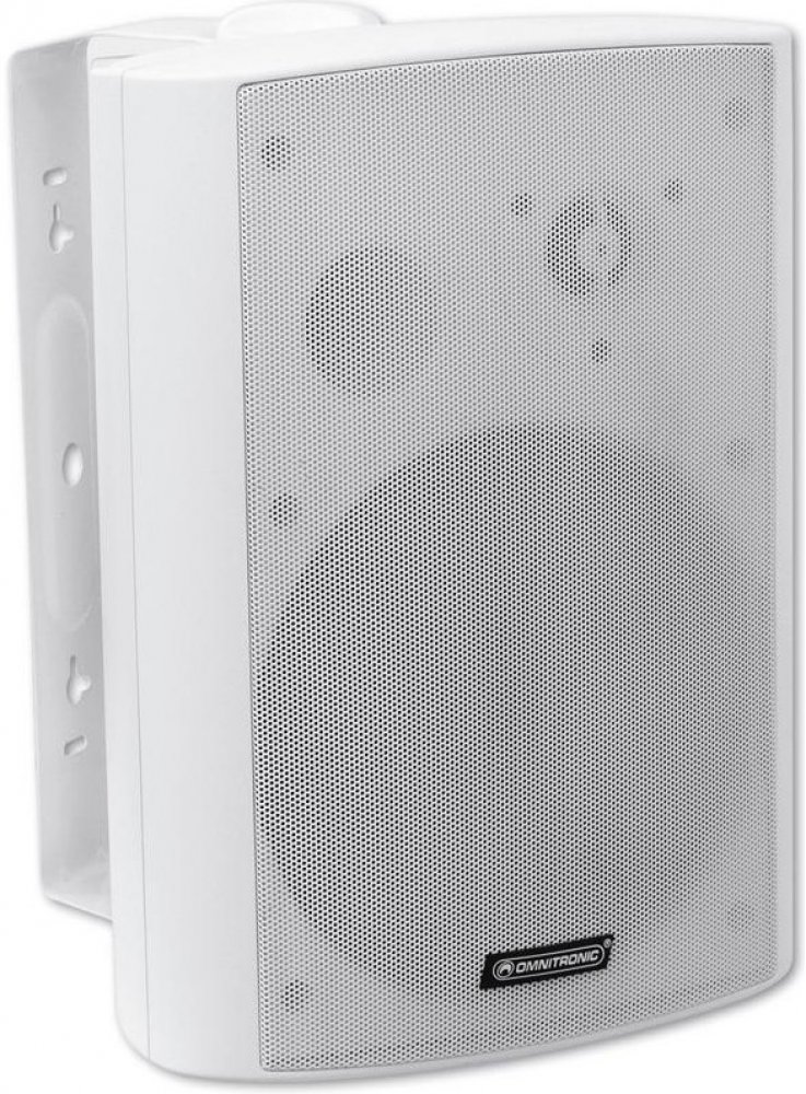 Univerzální 100V nástěnné reproboxy. Volitelný výkon 2,5 - 40W RMS pomocí potenciometru na zadním panelu. Lichoběžníkový tvar umožňuje umístění reproboxů v rozích místnosti, šroubovací svorky pro připojení signálu.
