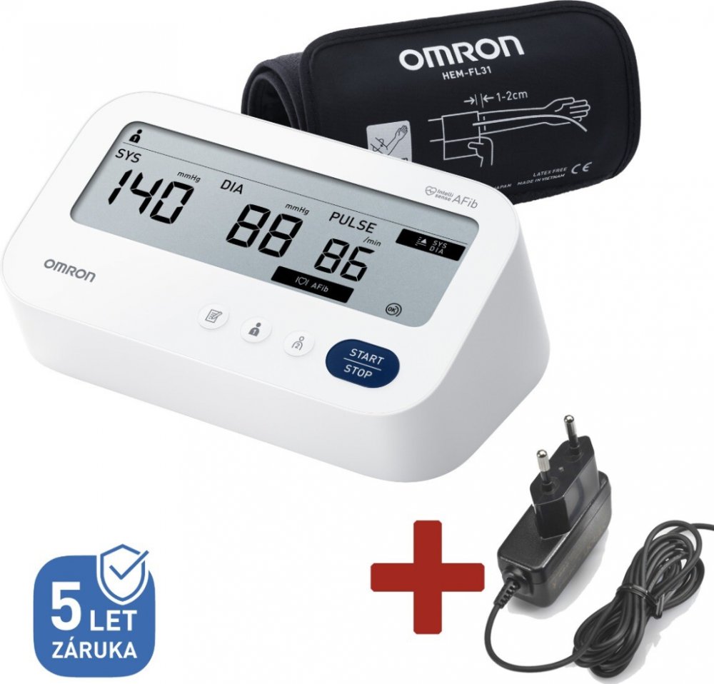 Omron M3 Comfort je přesný tlakoměr s detekcí fibrilace síní, Intelli manžetou, síťovým zdrojem, pamětí pro 2 uživatele a 5letou zárukou pro bezpečné domácí měření.