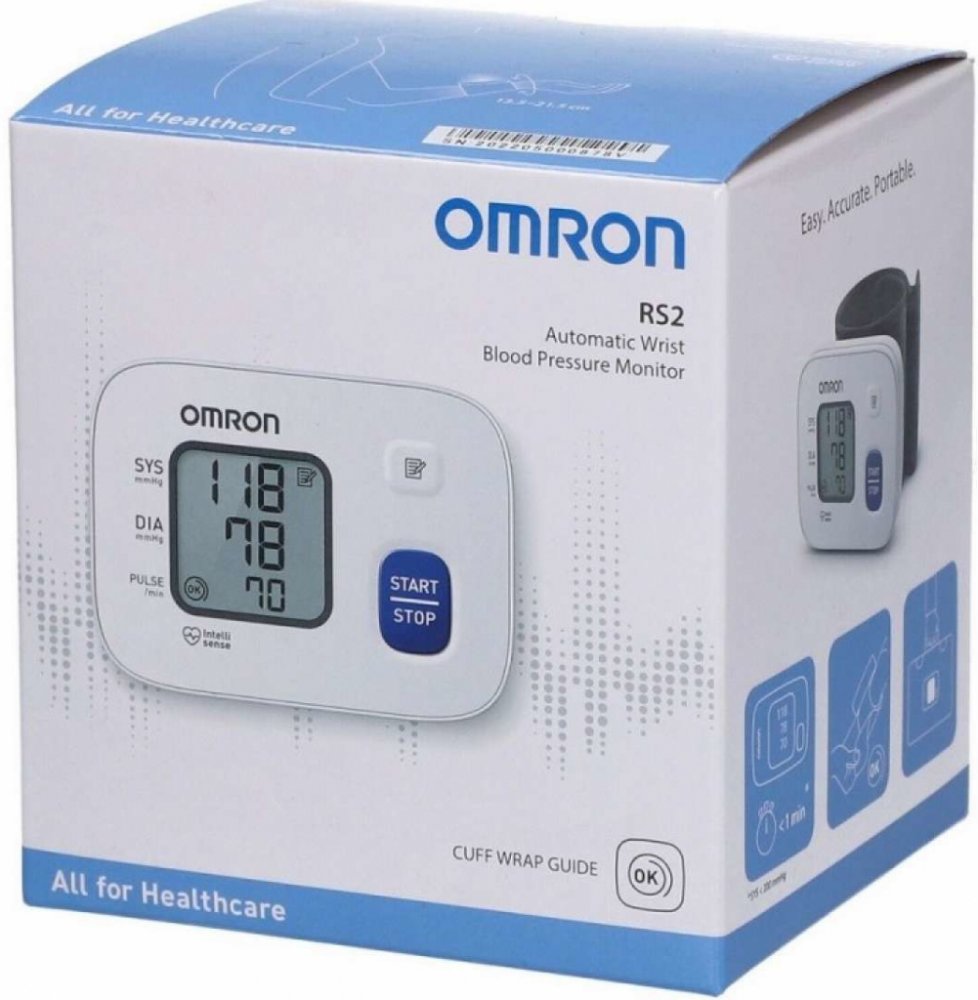 Omron RS2 Tonometr na zápěstí je plně automatický přístroj pro měření krevního tlaku na zápěstí. Přístroj nabízí snadné použití a přesné výsledky díky technologii IntelliSense, která zajišťuje jemné nafouknutí manžety. Má velký, snadno čitelný displej, který zobrazuje krevní tlak a puls. Díky kompaktnímu designu je ideální pro domácí použití i cestování. Omron RS2 také obsahuje indikátor nepravidelného tepu.