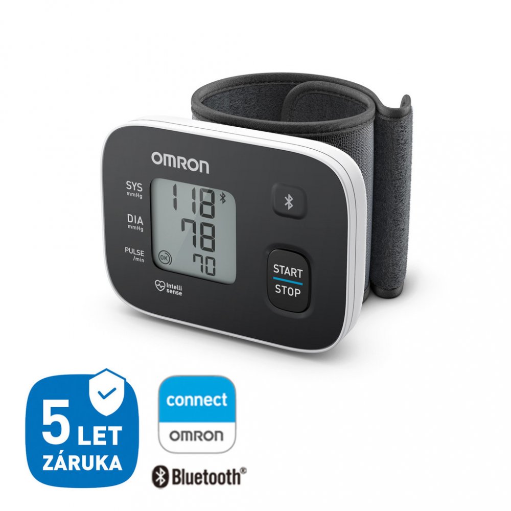 Omron bílá, černá, šedá bateriové na zápěstí pro cestování (na baterie) pro detekci arytmií/ECG oscilometrické automatické 60 - 260 mmHg 40 - 180 tep/min 91 g pro synchronizaci s telefonem (Bluetooth/aplikace) pro malé paže integrovaná bez hadičky