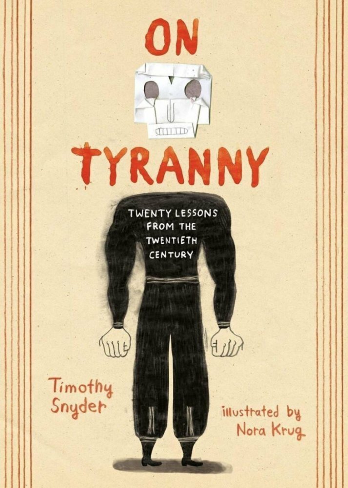 Timothy Snyder’s New York Times bestseller On Tyranny uses the darkest moments in twentieth-century history, from Nazism to Communism, to teach twenty lessons on resisting modern-day authoritarianism. Among the twenty include a warning to be aware of how symbols used today could affect tomorrow (“4: Take responsibility for the face of the world”), an urgent reminder to research everything for yourself and to the fullest extent (“11: Investigate”), a point to use personalized and individualized speech rather than clichéd phrases for the sake of mass appeal (“9: Be kind to our language”), and more.