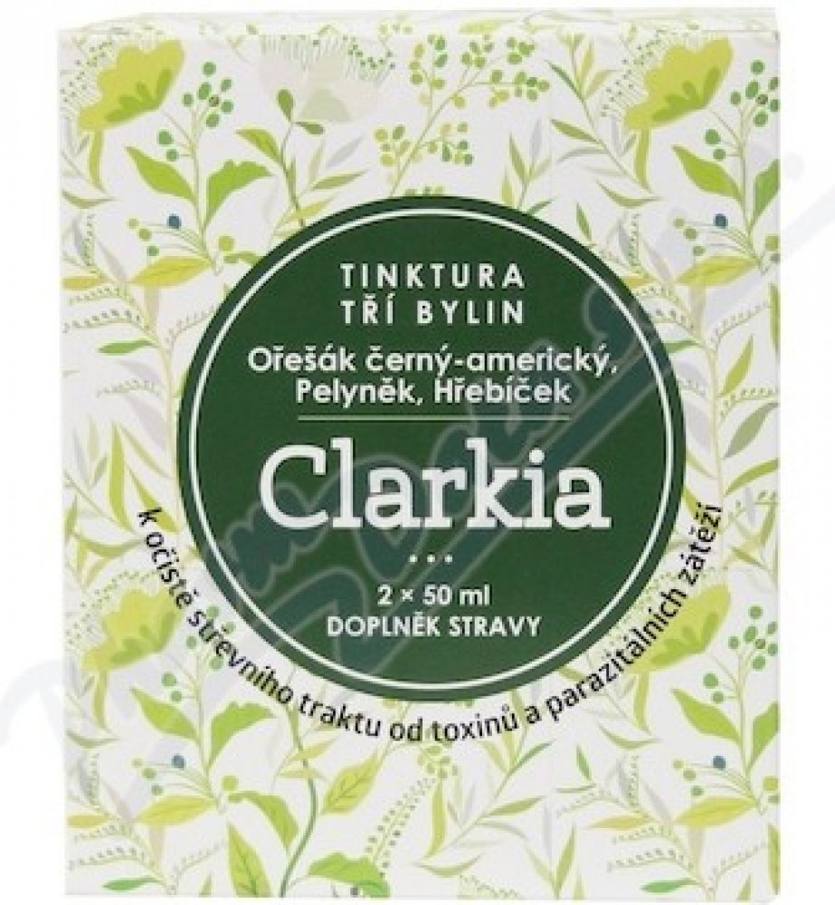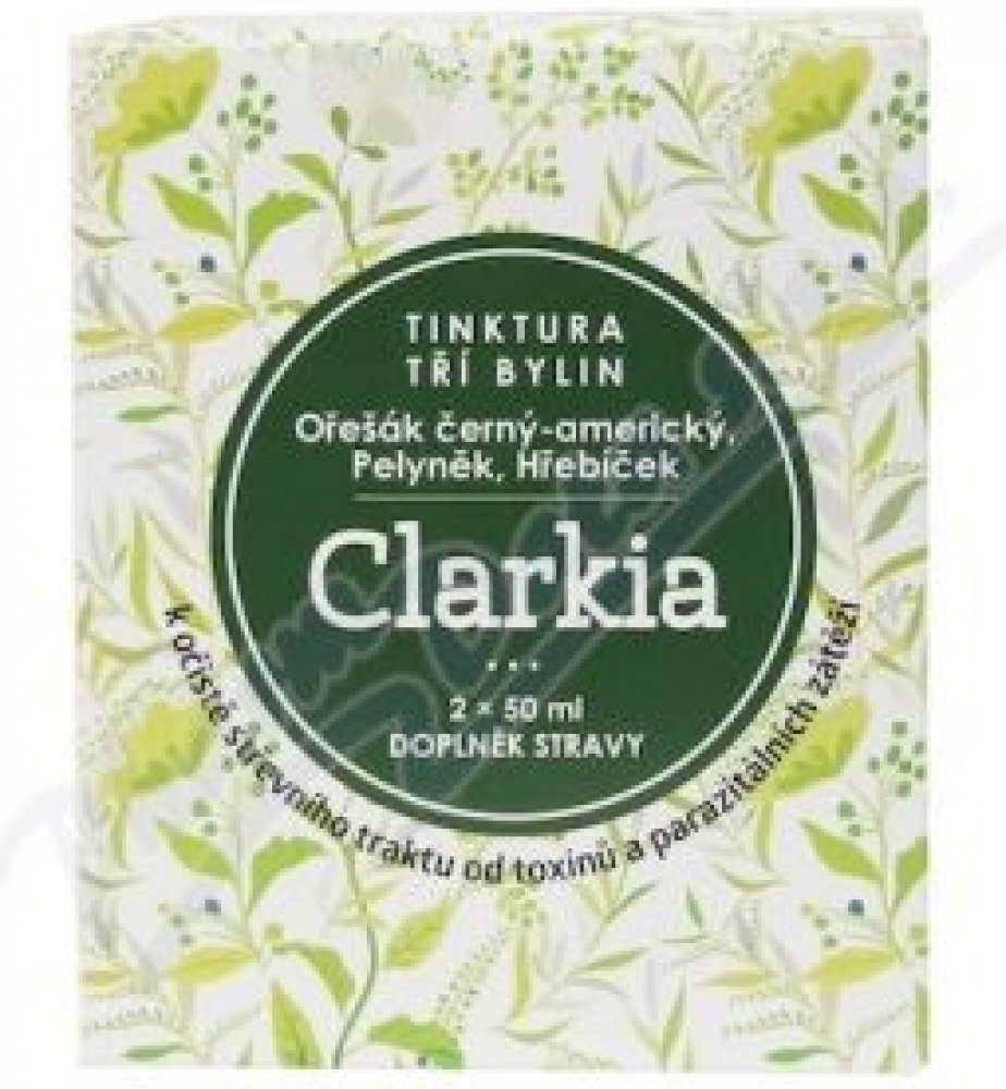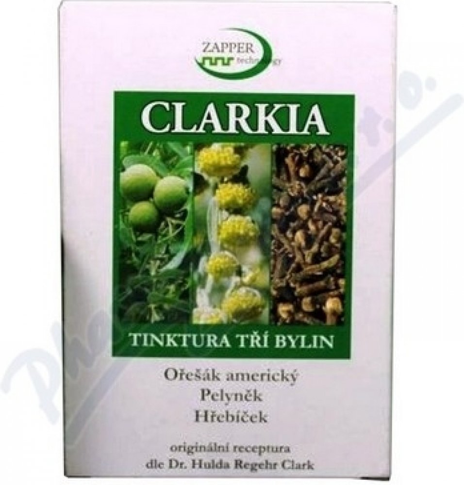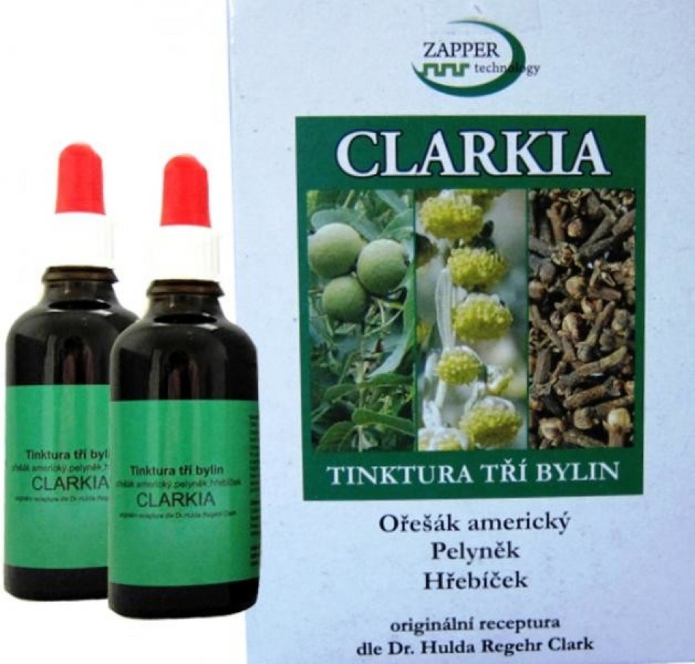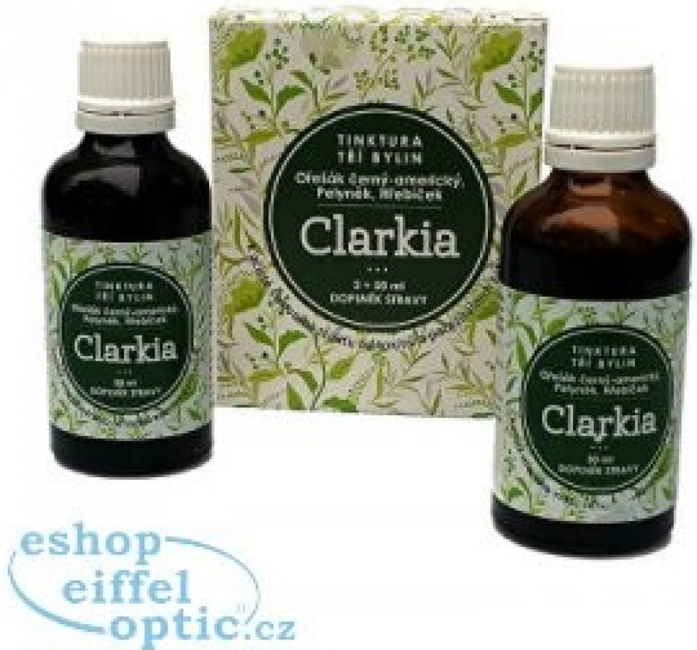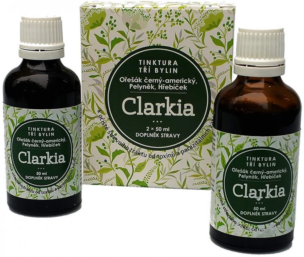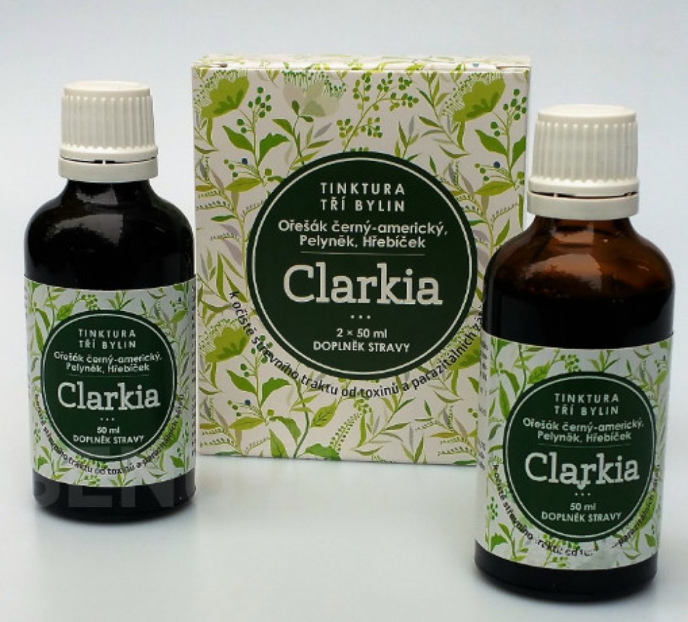 Tinktura Clarkia je směsí tinktury z Ořešáku amerického, výluhu z hřebíčkovce kořenného a pelyňku. Jedná se o přesné složení, které Dr.Clarková doporučuje pro očistu zažívacího ústrojí od parazitální zátěže. Tinktura Clarkia se vyrábí komplikovaným výrobním způsobem hlubokého zmrazování. Použité suroviny nebyly jakýmkoliv způsobem znečištěny či průmyslově hnojeny. Výroba je pod dozorem státních orgánu a Tinktura tří bylin Clarkia je notifikována Ministerstvem zdravotnictví ČR.