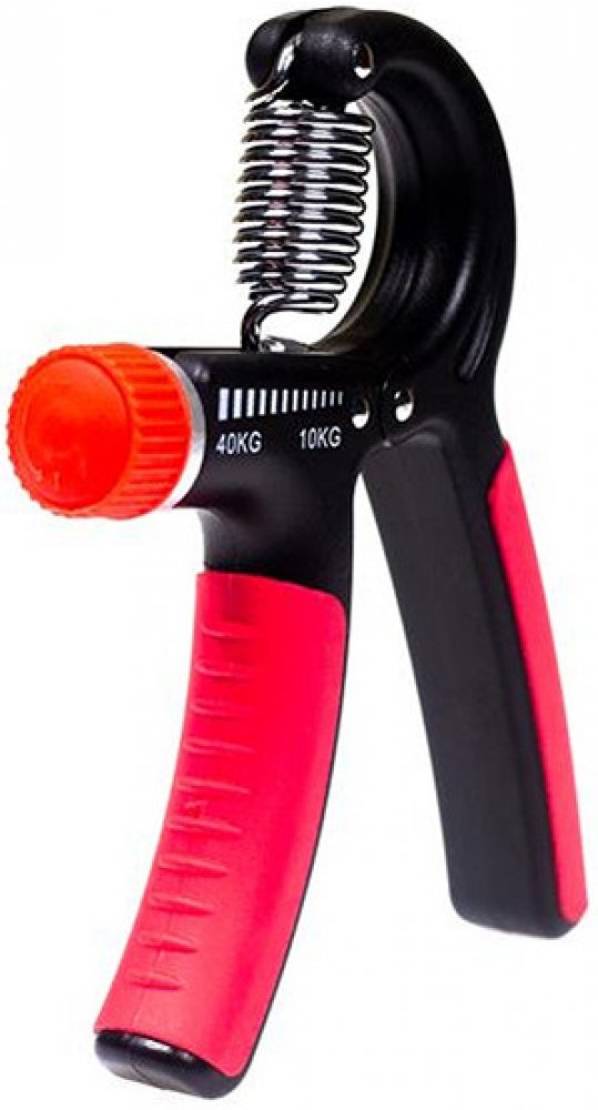 Posilovač zápěstí s tvarovanou rukojetí a nastavitelným odporem stisku. Účelem je posílení zápěstí a svalů předloktí.