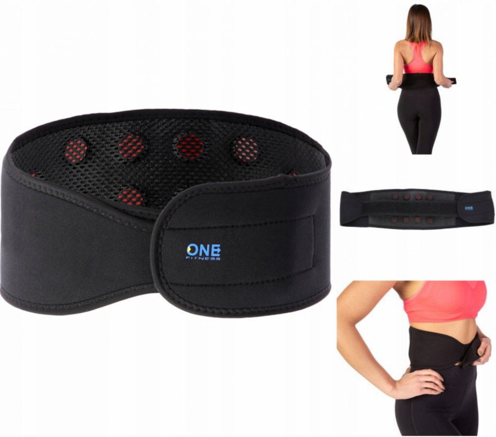 Magnetický, stabilizační pás ONE Fitness PS168 je určen pro snížení bolestivosti zad. Jeho účinek je stabilizace zad a ulehčení bederní páteři. Bederní část pásu je opatřena 16-ti magnety, ty vytváří magnetické pole, které má pozitivní účinek na bolest, nebo otok. Použití pásu je vhodné po úrazech a při fyzické činnosti. Zapínání pásu se provádí pomoci dlouhého, suchého zipu, velikost modelu PS168...