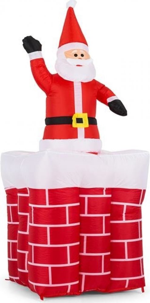 Letošní Vánoce budou prostě obrovské! Zpříjemněte si Vaše okolí domu touto nafukovací dekorací v podobě Santa Clause s komínem v celkové výšce až 1,8 m.Dekorace se sama nafukuje prostřednictvím vlastního nafukovacího systému. Z velkého cihlového komína každých 20 sekund vylézá a opět zalézá vánoční Santa Claus. Dekorace se mimořádně hodí na ploché střechy či přístřešky, které spolu s komínem vytvoří skvělý estetický efekt. Vnitřní LED světlo osvětluje zevnitř vánoční dekoraci, čímž vynikne i v noci. Dekorace je před počasím chráněna podle IP44, čili je odolná vůči dešťové vodě a sněhu.Dekoraci zespodu zatěžuje několik kapes s pískem, přičemž pro ještě větší stabilitu je k dispozici čtveřice kovových kolíků na zakotvení. Po vánočním čase se dá dekorace jednoduše složit a uskladnit v krabici.