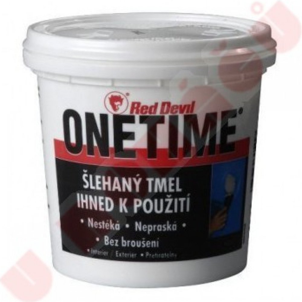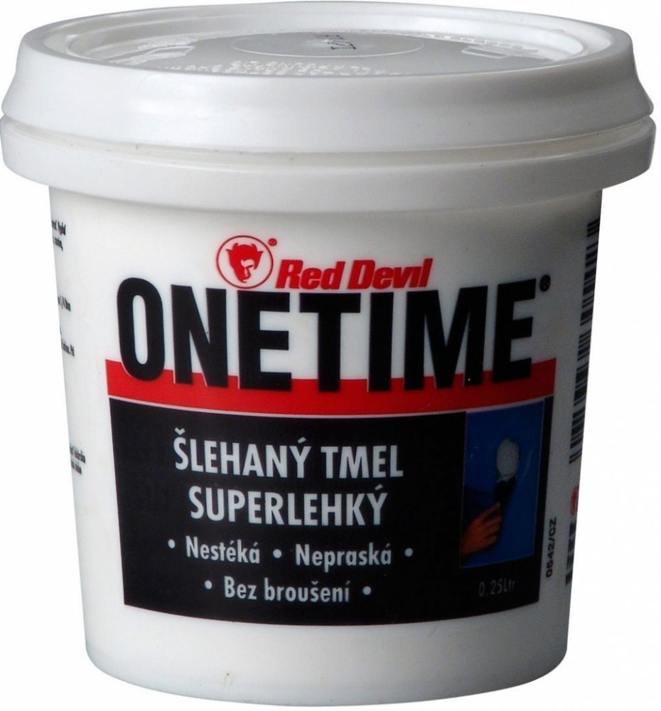 Šlehaný opravný tmel ONETIME o objemu 4 l díky svému složení výborně vyplní vlasové praskliny a díry po hřebicích nebo hmoždinkách. Tmel je ihned aplikovatelný bez potřeby následného broušení. Použití je možné na všechny porézní materiály, sádrokarton, dřevo, dřevotřísku či k opravám poškozených rohů. Šlehaná konzistence umožní velmi lehké a dobré vytvarování. Tento velmi lehký plnič je možný použít ve vnitřním i venkovním prostředí. V obou případech je velmi lehce přetíratelný interiérovými a exteriérovými barvami. Šlehaný tmel disponuje výbornou přilnavostí k povrchu, nestéká, nesmršťuje se a nepraská. Nanášení se doporučuje pomocí hladké a pružné špachtle. Pro většinu povrchů stačí aplikovat pouze jednu vrstvu tmelu.