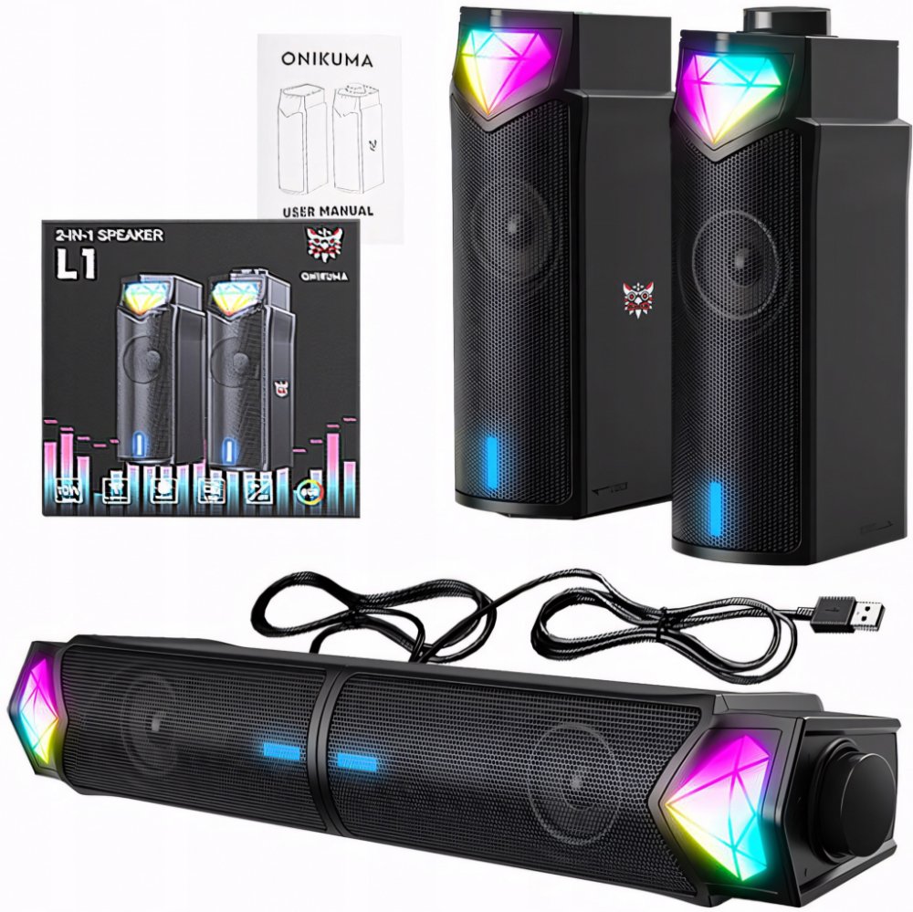 Herní reproduktory ONIKUMA L1 jsou spojením skvělého zvuku a stylu, ideální pro každého herního nadšence. Nabízejí fantastickou kvalitu zvuku, barevné podsvícení a několik možností připojení pro úžasný zážitek během jakékoli hry. Nyní můžete získat výhodu hned od začátku! Vyznačují se také jedinečným designem, který umožňuje používat je jako dva samostatné reproduktory nebo je kombinovat dohromady.