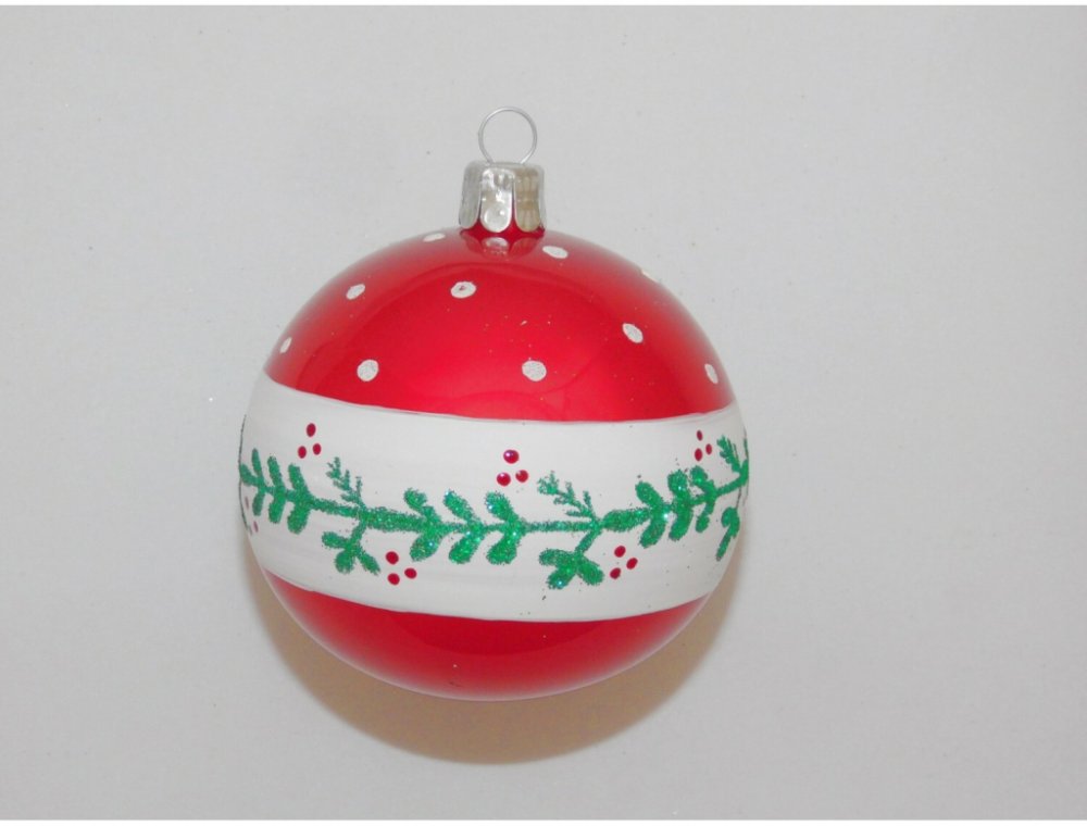 ONREX Vánoční ozdoba skleněná koule červená zelená cesmína pr. 8 cm