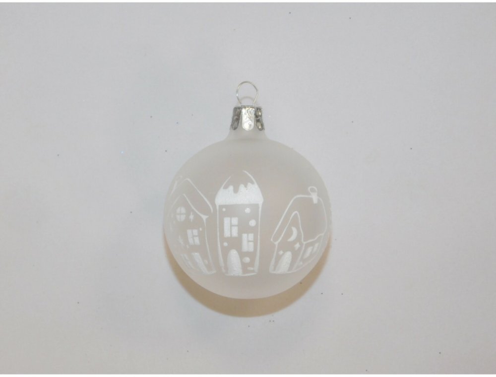 ONREX Vánoční ozdoba skleněná koule transparentní vesnice pr. 8 cm