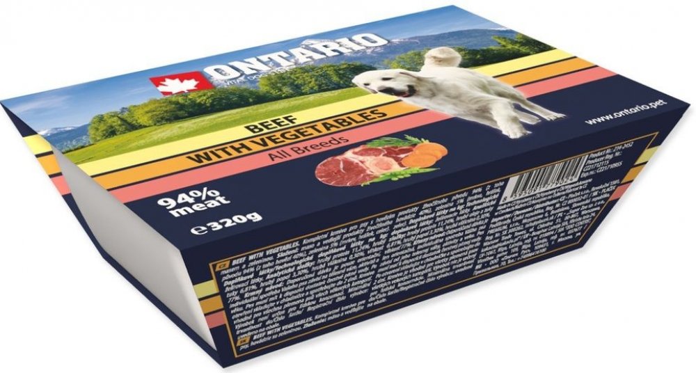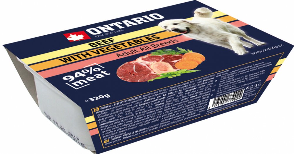 Ontario Ontario 320 g dospělí hovězí superprémiové pro všechny trávicí ústrojí vaničky maso ve šťávě se zeleninou Česká republika 0.3 % 3.24 %