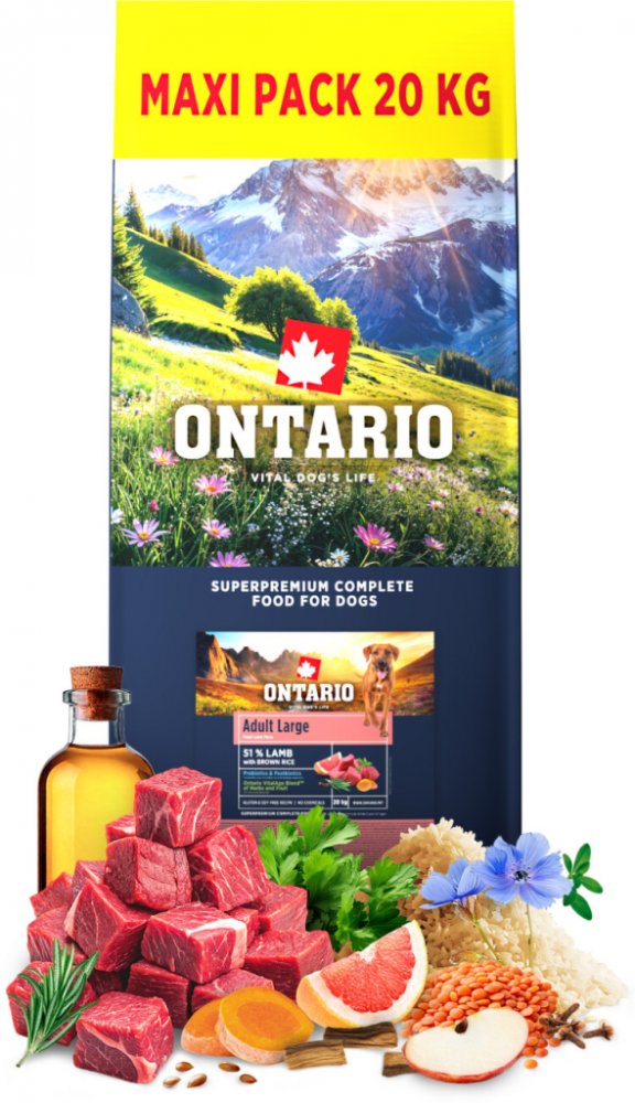 Benefity krmiva Ontario pro dospělé psy velkých plemen s jehněčím masem: