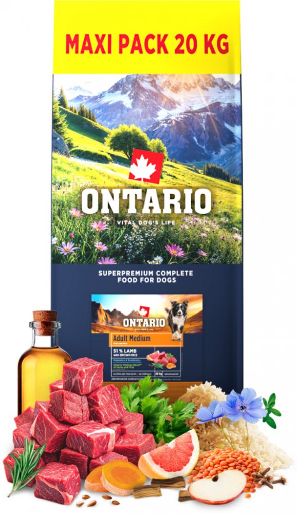 Receptury suchých krmiv Ontario jsou postaveny na vysokém obsahu kvalitního masa a minimálním množství vedlejších produktů s vysokým obsahem živin - pro zdravé trávení a optimální výživu. Ontario je strava, která přináší vitalitu přizpůsobenou každému psovi - respektuje jeho věk, velikost a kondici.