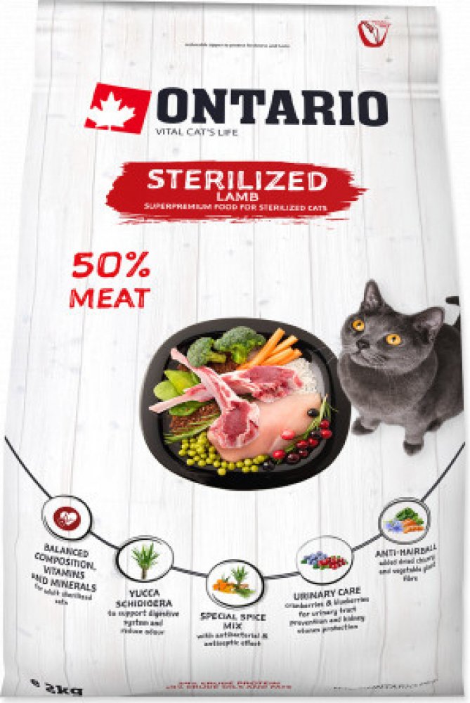 Ontario 2 kg jehněčí Ontario pro dospělé suché superpremiové plastové obaly
