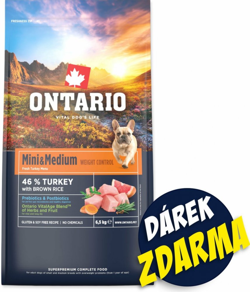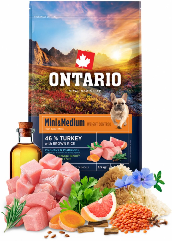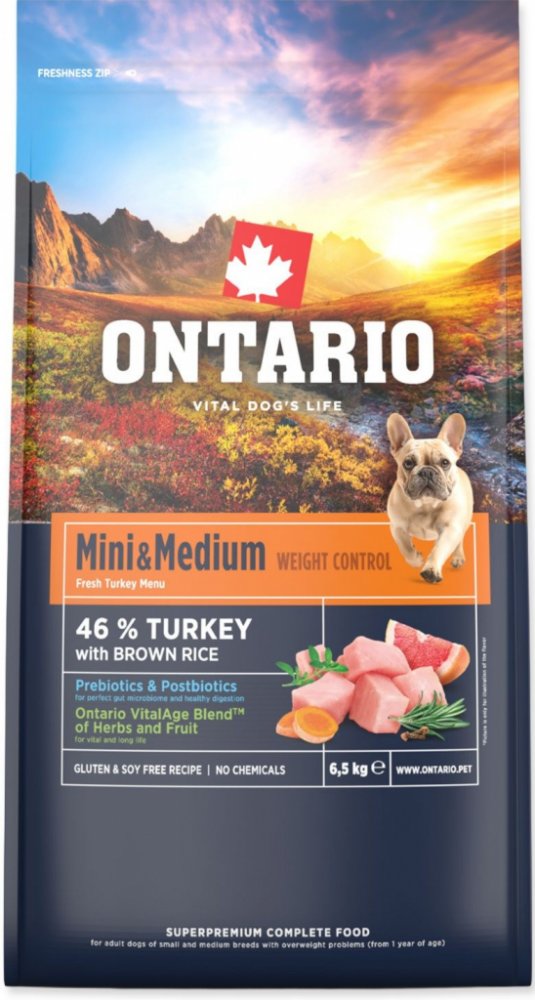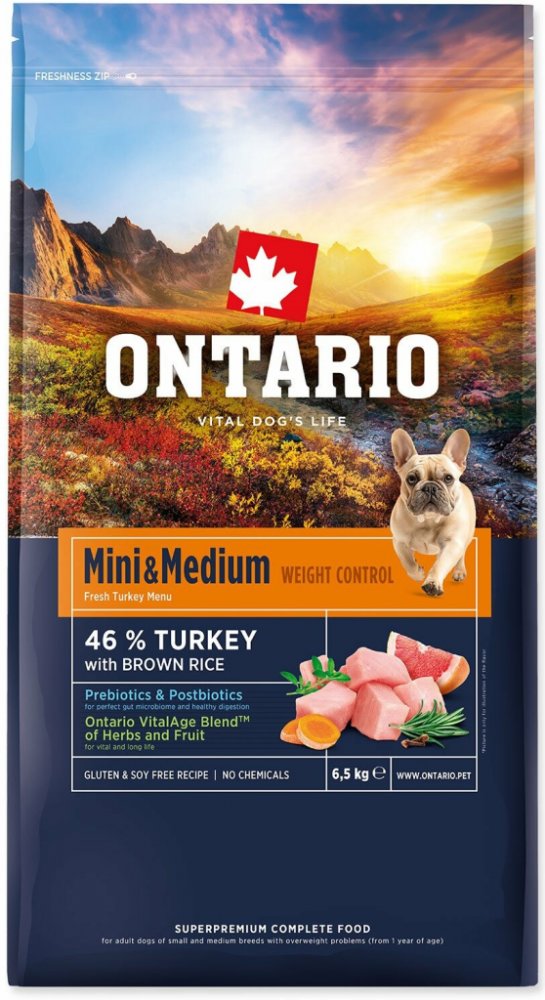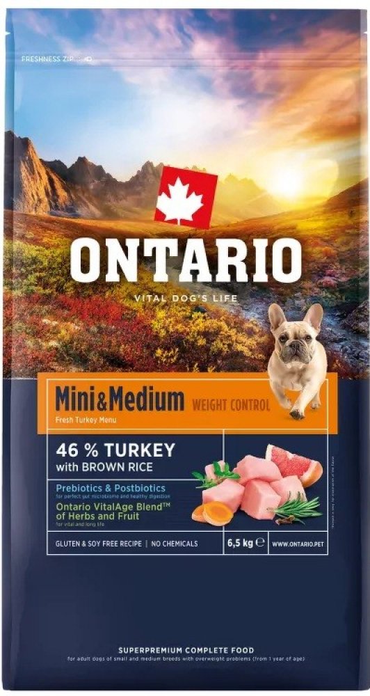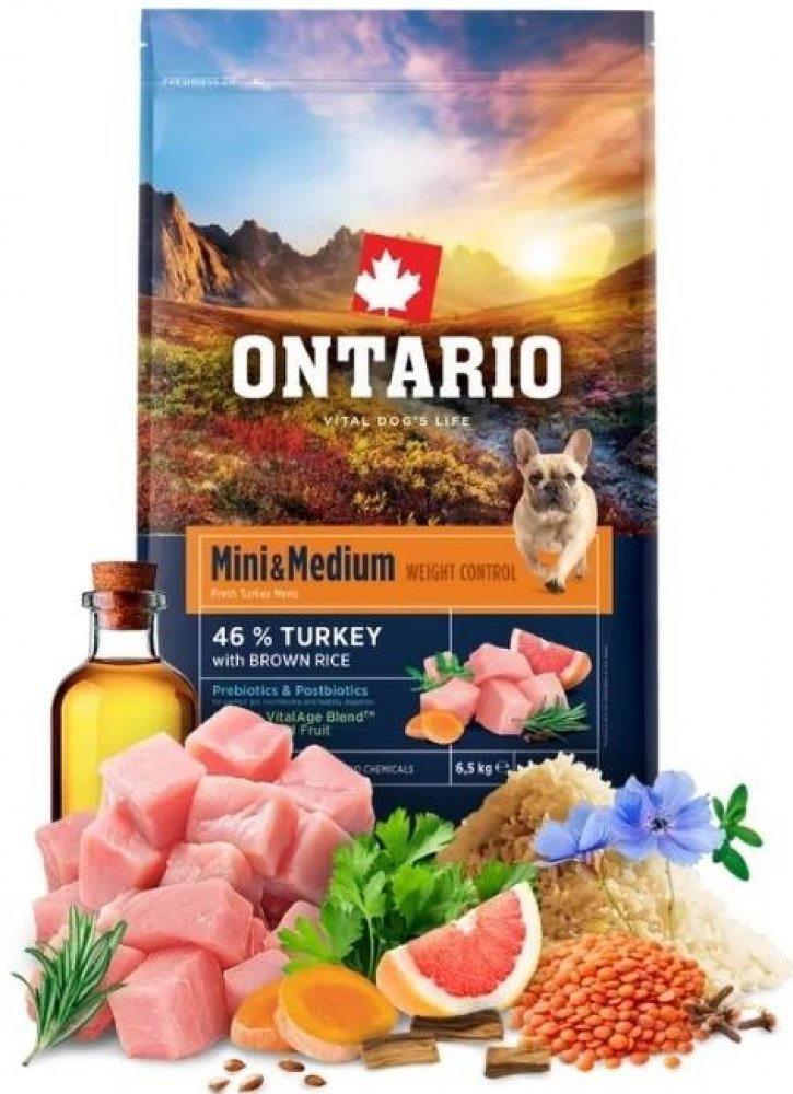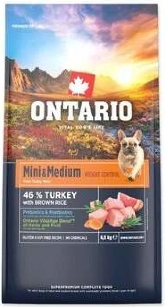 Ontario Mini & Medium Weight Control Turkey & Brown Rice 6,5 kg