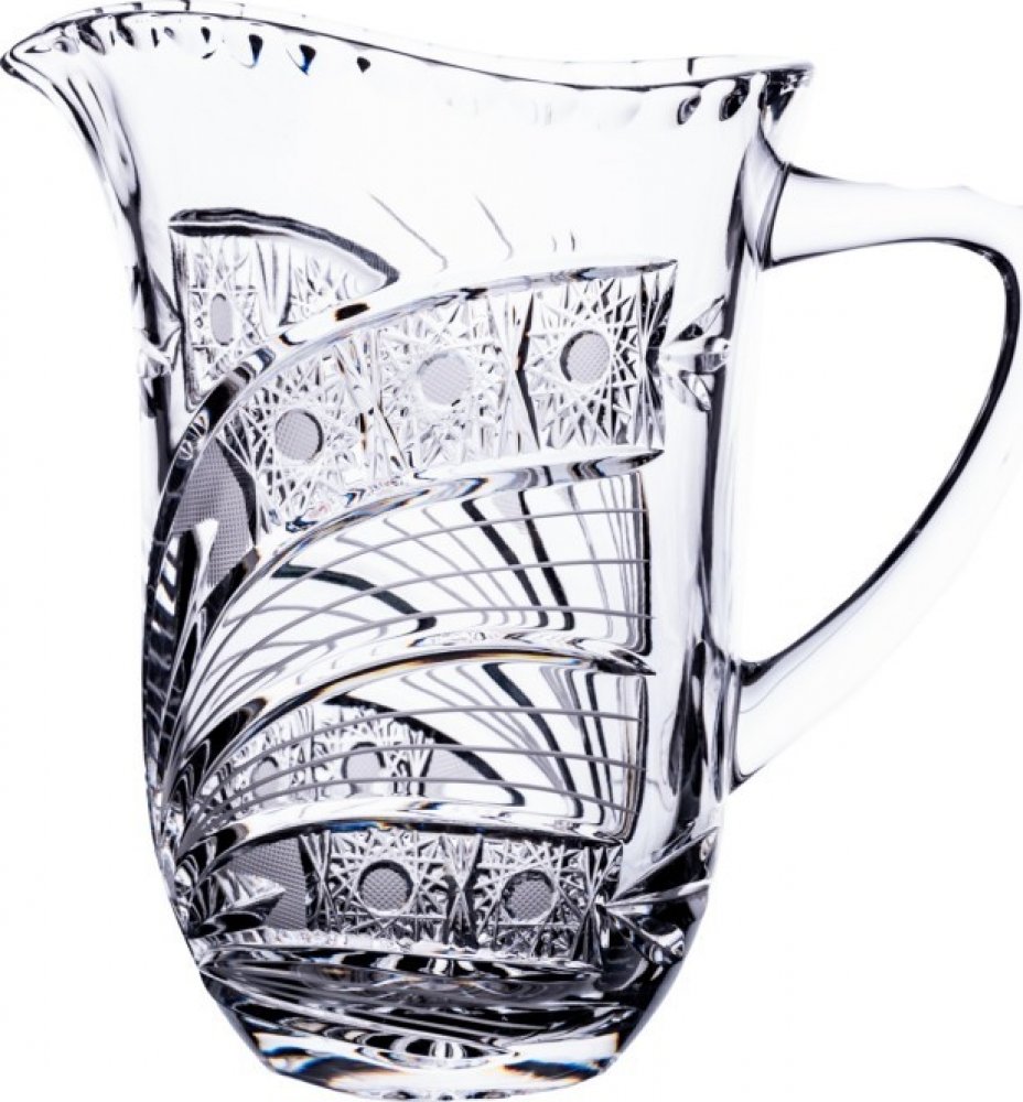 Tento stylový džbán je vyrobený z křišťálového skla s příměsí olova, díky čemuž má adekvátní váhu, sílu a lesk. Džbán na pivo je zdobený v tradičním ručně broušeném dekoru.