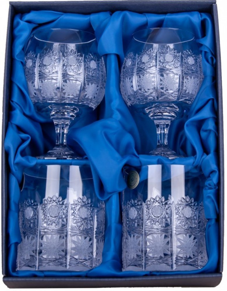 Whisky sklenice i skleničky na rum jsou vyrobeny z kvalitního olovnatého skla s obsahem min 24% PbO., které je dále dekorované ručním brusem.