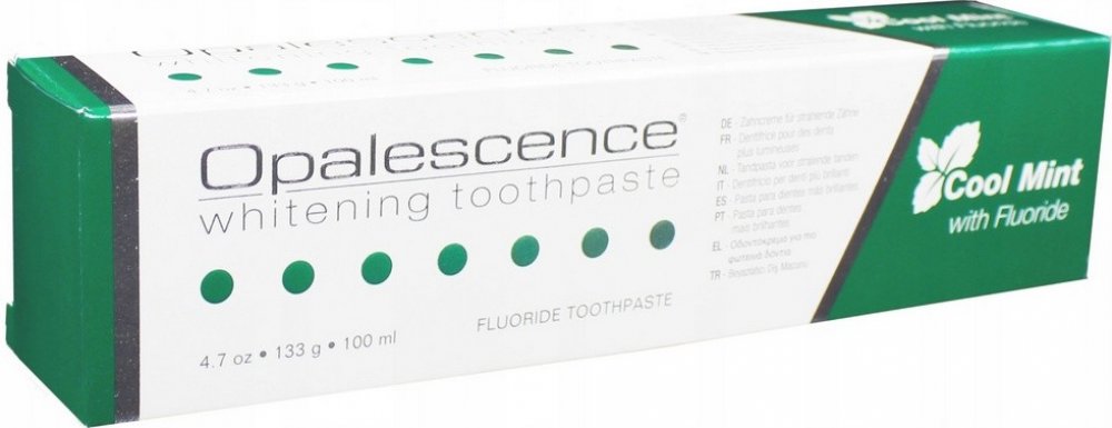 Prvotřídní zubní pasta značky Opalescence se stará o krásný a zářivý úsměv. Díky svému složení je méně abrazivní, než ostatní zubní pasty specializované na bělení zubů, což znamená, že neobrušuje zubní sklovinu a tím je k zubům šetrná. Obsahuje fluorid sodný, který pomáhá předcházet kazům a posiluje zubní sklovinu.