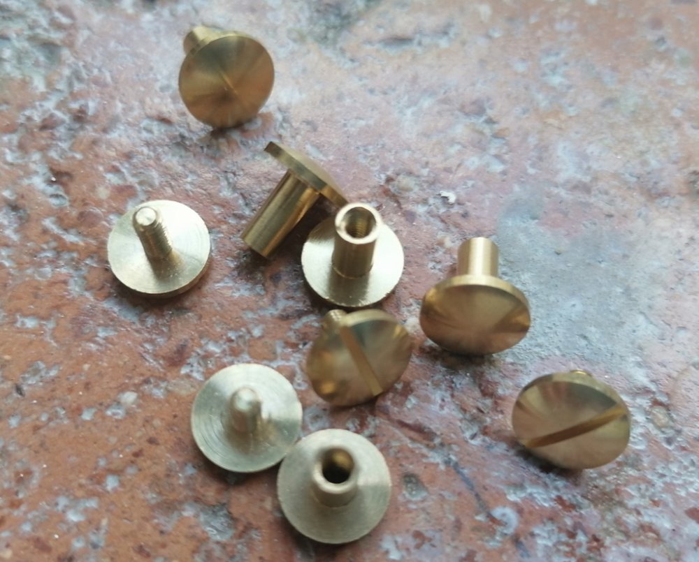 Šroubek na ozdobení kabelek, pásků, spojení látek apod. Průměr hlavičky je cca 10 mm, protikus na zaroubování křížovým šroubovákem má hlavičku s průměrem cca 9 mm. Síla šroubku 8 mm. Tj. v případě spojování více látek dohromady nebo nasazení na pásek může být vrstva látek (kůže, koženky apod.) maximálně 8 mm.