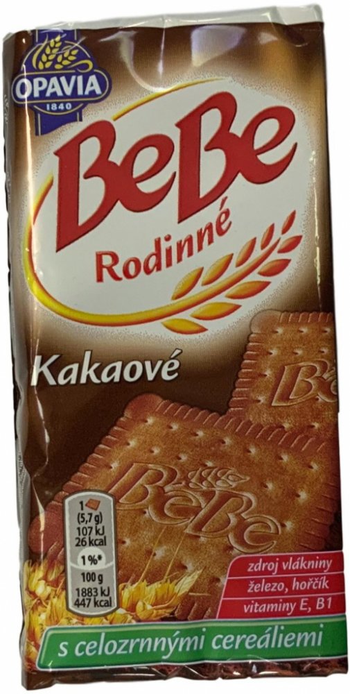 NUTRIČNÍ HODNOTY produktu - OPAVIA BeBe sušenky rodinné kakaové 130 g / 100g výrobku