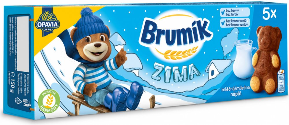 -- • Měkká svačina s hravým tvarem medvídka• 5 Brumíků uvnitř balení• 28% mléčné náplně• Bez barviv a konzervantů• S moukou pocházející z Iniciativy Harmony pro udržitelné pěstování pšeniceV současné chvíli probíhá změna vizuálu u tohoto výrobku. Zboží…