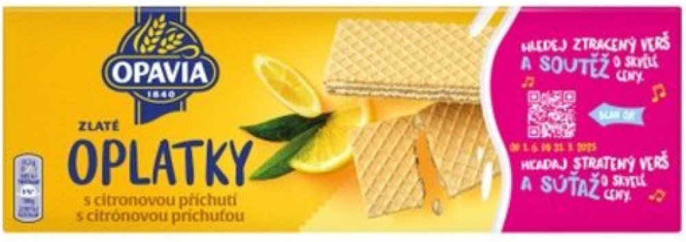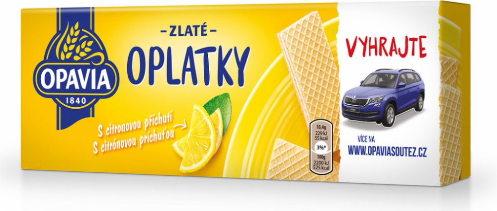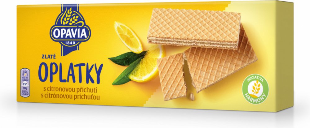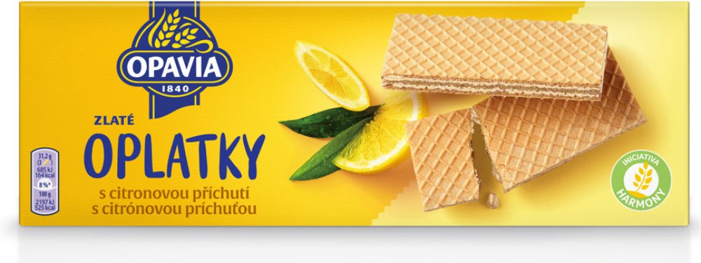 Dopřejte své rodině i přátelům spoustu zlatých momentů s oblíbenými Zlatými oplatkami Opavia. Váš chuťový zážitek se umocní delikátní a bohatou náplní v řadě oblíbených příchutí: lískový oříšek, čokoláda, nugát, káva, smetana nebo osvěžující citron. Jsou skvělé v kombinaci s kávou nebo čajem. Vychutnejte si je hezky společně!, Oplatky s náplní (71 %) s citronovou příchutí,