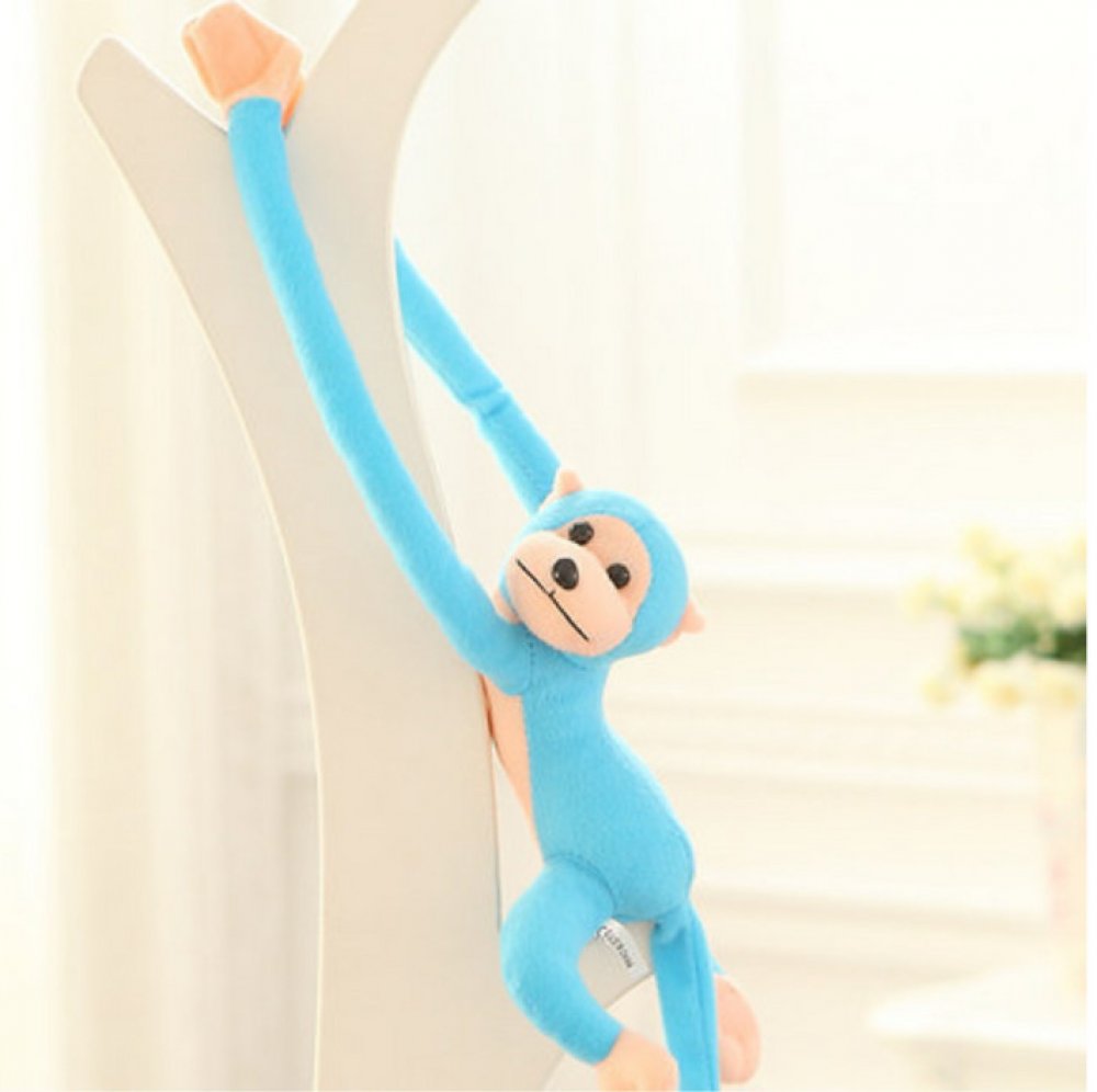 Roztomilá plyšová opice v modré barvě o délce 80 cm je ideální parťák na mazlení i hraní. Má dlouhé končetiny s praktickými pásky na suchý zip pro snadné připevnění na ruku či nábytek a po stisknutí bříška vydává zvuk. Jemný, hebký materiál a certifikace CE dle EN71 potěší rodiče i děti od 3 let.