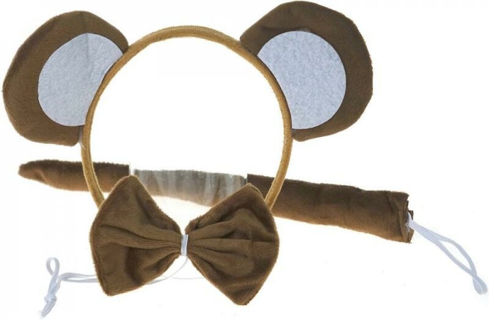 Opička - doplněk ke karnevalovému kostýmu. Součástí čelenka s ušima, motýlek a ocas.