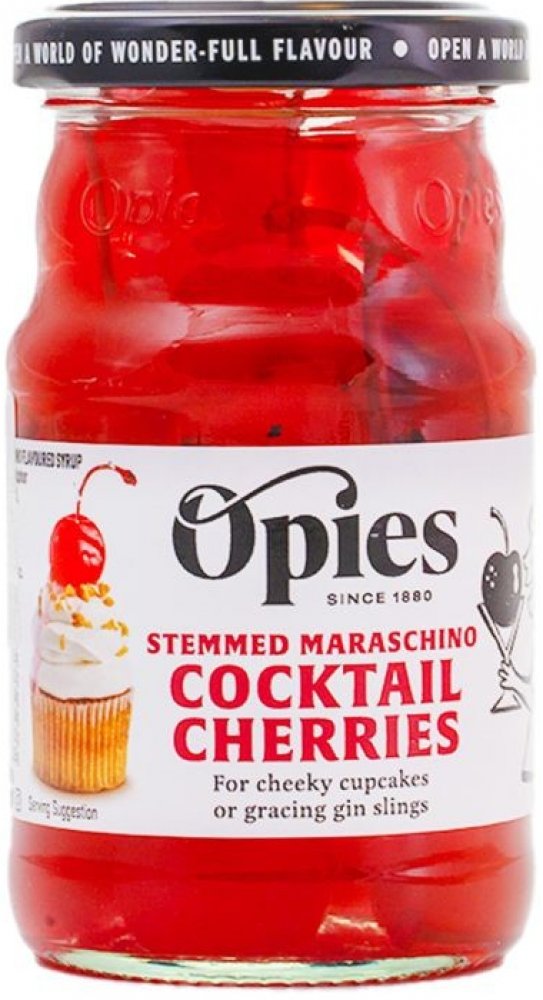 Red Maraschino třešně se stopkou Třešně Opies Maraschino se stopkou jsou ideální volbou pro profesionální barmany a šéfkuchaře, kteří hledají kvalitní dekoraci s výraznou chutí pro své nápoje a dezerty. Vyrobené z vybraných třešní a pečlivě naložené v Maraschino sirupu, dodají vašim výtvorům sofistikovaný vzhled a skvělou chuť. Opies, značka s dlouholetou tradicí od roku 1880, přináší nezaměniteln...