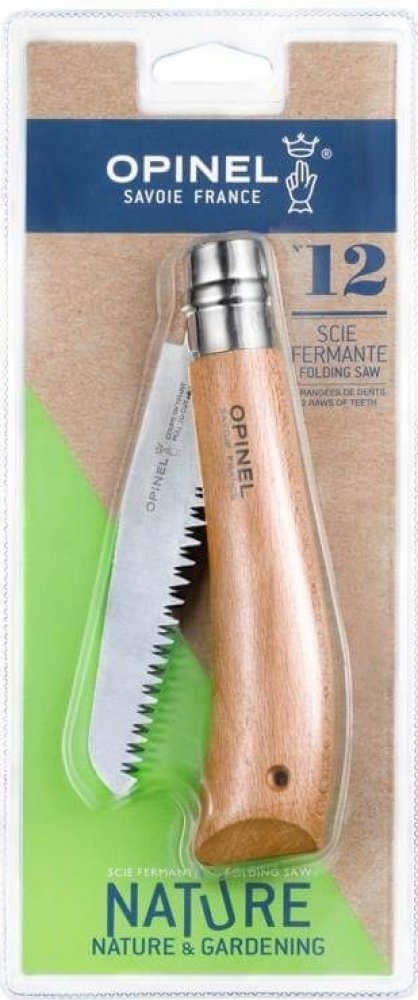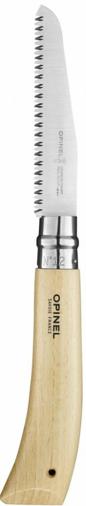 Kapesní pila s ultraúčinnou čepelí pro řezání větví o průměru menším než 8 cm.Pro zahradu, ale i pro venkovní aktivity, je tato malá velmi užitečná a efektivní. Pila je usazena uhlíkovými listy s antikorozní vrstvou. Pilový kotouč je vyroben z uhlíkové oceli, která zaručuje výjimečnou řeznou hranu, s antikorozním povlakem, který jej chrání před korozí.Dvě řady ostrých zubů jsou orientovány směrem k rukojeti a umožňují snadné řezání tažením .Buk je nejpoužívanější dřevo pro výrobu držadel Opinel. Pochází z francouzských farem, je těžké, odolné a snadno se s ním pracuje. S homogenním vzhledem se jeho světlá barva mění od žluté po růžovou. To je rozpoznatelné přítomností mnoha malých tmavých čar. Rukojeť je lakovaná, aby byla lépe chráněna před vlhkostí a nečistotami.. U této pily je k dispozici ochranný systém Virobloc®. Bezpečnostní kroužek Virobloc, který v roce 1955 vynalezl Marcel Opinel, je vybaven všemi zavíracími noži od čísla 06. Virobloc je vyroben z nerezové oceli a skládá se ze dvou částí: pevné části a posuvné části. Kromě blokování čepele v otevřené poloze (bezpečnost při používání) je nyní možné čepel uzamknout v uzavřené poloze (zabezpečení při přepravě).To vám umožní pracovat efektivně a zároveň minimalizovat riziko.