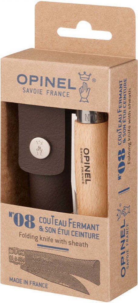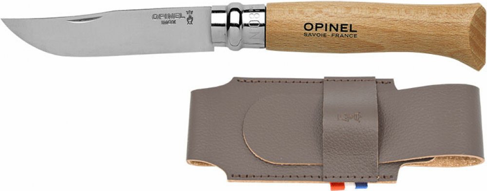 Kapesní zavírací nůž Opinel N°08 Inox s pouzdrem ze syntetické kůže