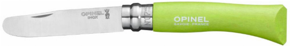 Dětský nůž s kulatou špičkou opatřený pojistkou.