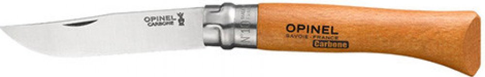 Opinel s čepelí z velmi kvalitní uhlíkové oceli. Střenka nože Opinel je vyrobena z jednoho kusu tvrdého dřeva a je chráněna speciálním lakováním proti vlkosti.